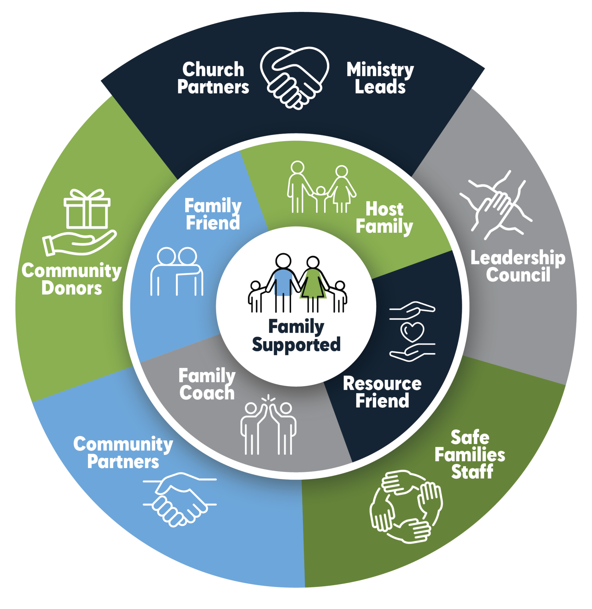Host Families  are part of Safe Families’ Circle of Support model and see their participation as a way of living out the compassion of Christ by caring for the hurting.  With this mindset, volunteer Host Families are able to bring the healing dynamic of Christian love to children and families in crisis. They can love the children placed in their care and to embrace them as a part of their family.